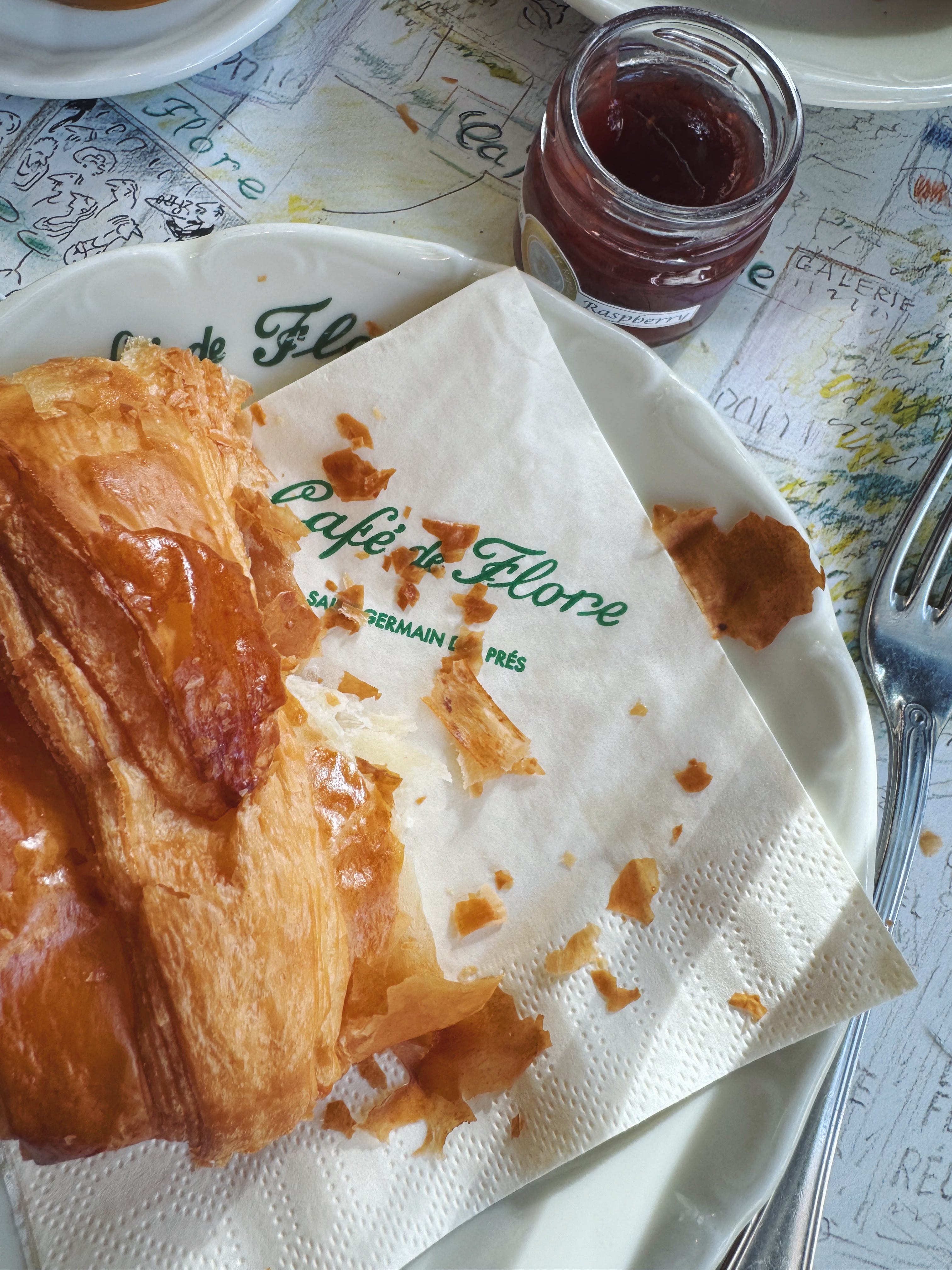 Café de Flore - 130 some odd years later and if there’s one thing you can count on, it’s that the tables are going to be full at Café de Flore. That the waiters are going to be in crisp aprons, expertly carrying full trays loaded with fresh croissants, coffee and tea, jam and juice. That you can wait for a table, just maybe grab a street facing one in a slice of sunshine and hear the echoes of a centuries worth of artists and locals and tourists alike sitting in the same spot. Hemingway at a table nearby. I love it there.